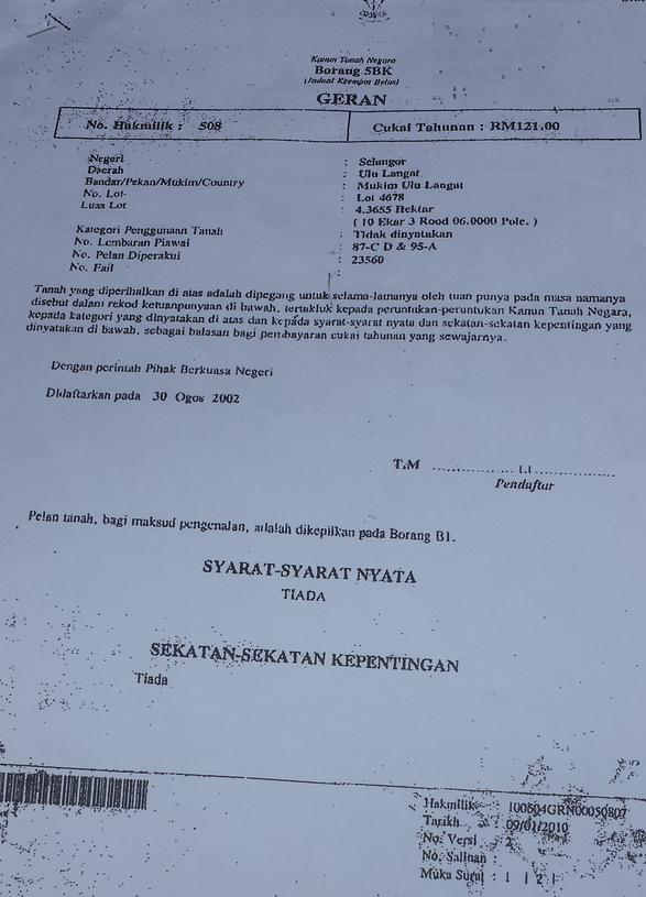 ulu langat 27 acres sample geran Published November 29, 2013 at 587 × 815 in 27 acre Agricultural land at Hulu langat with two rivers for Sale ← Previous Next →