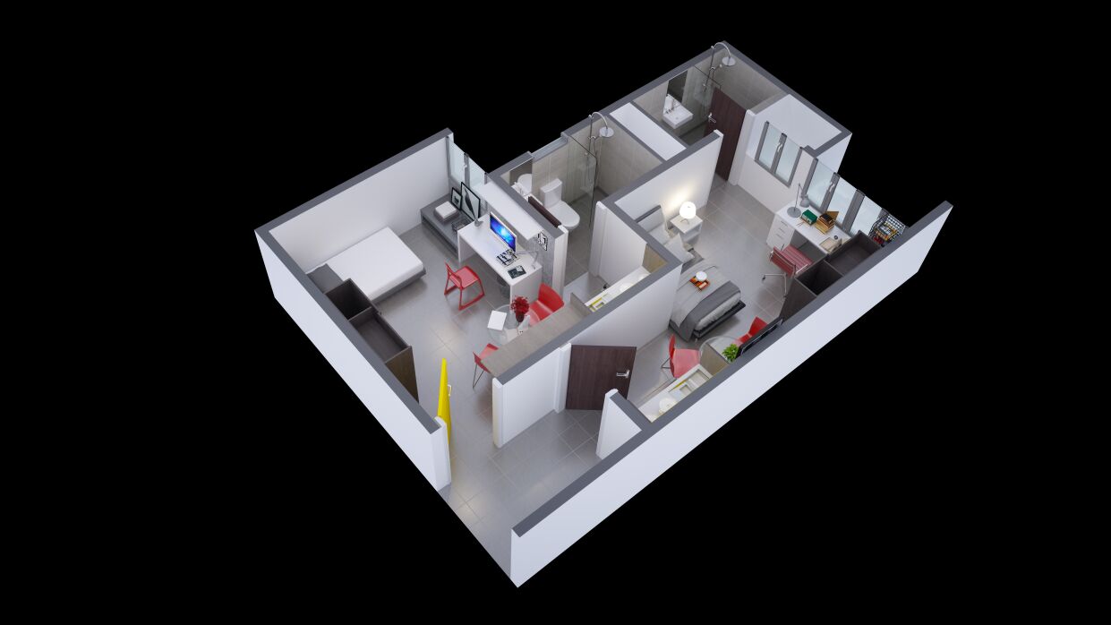 Each unit with Dual Entrance Dual Keys 2 Rooms 2 Baths