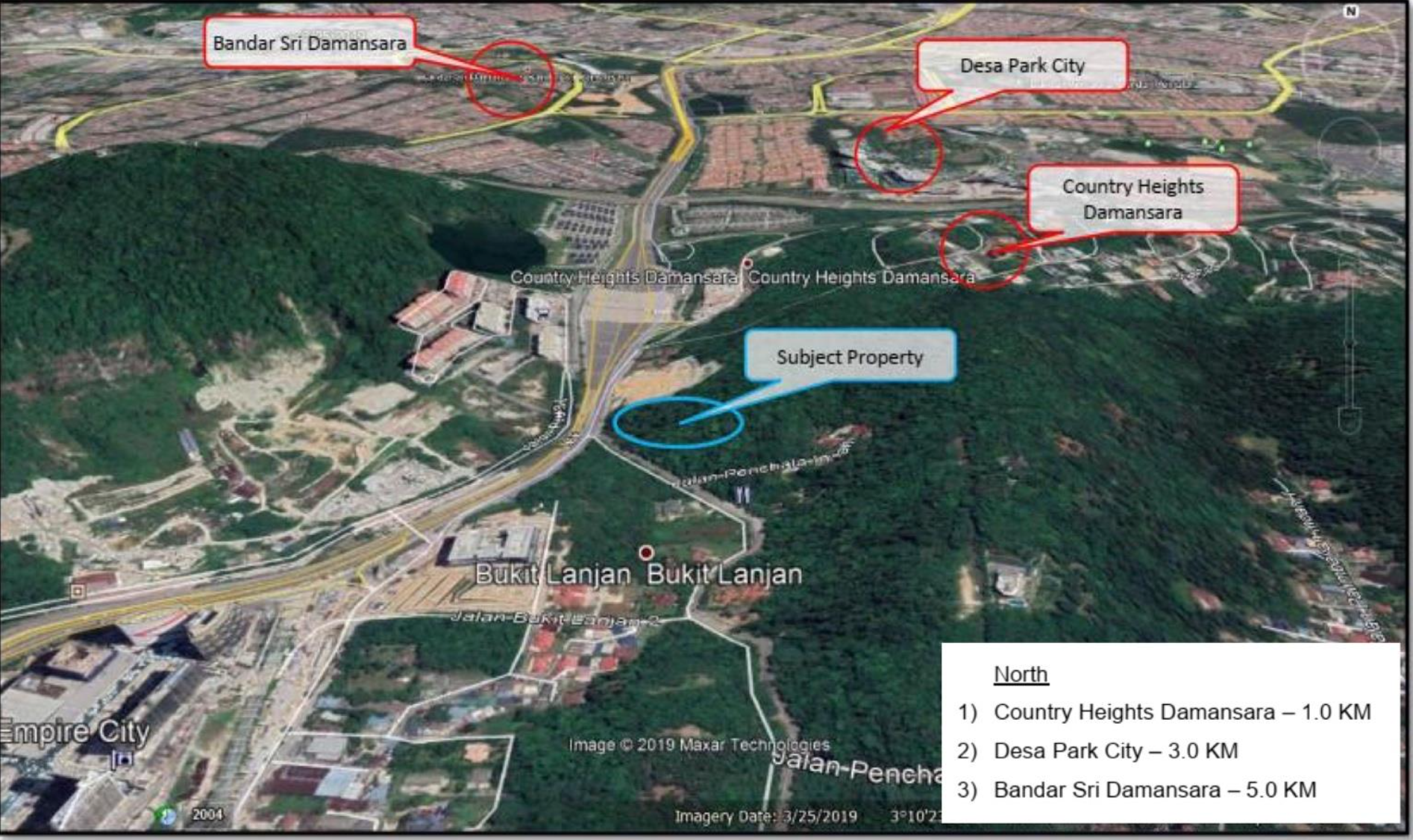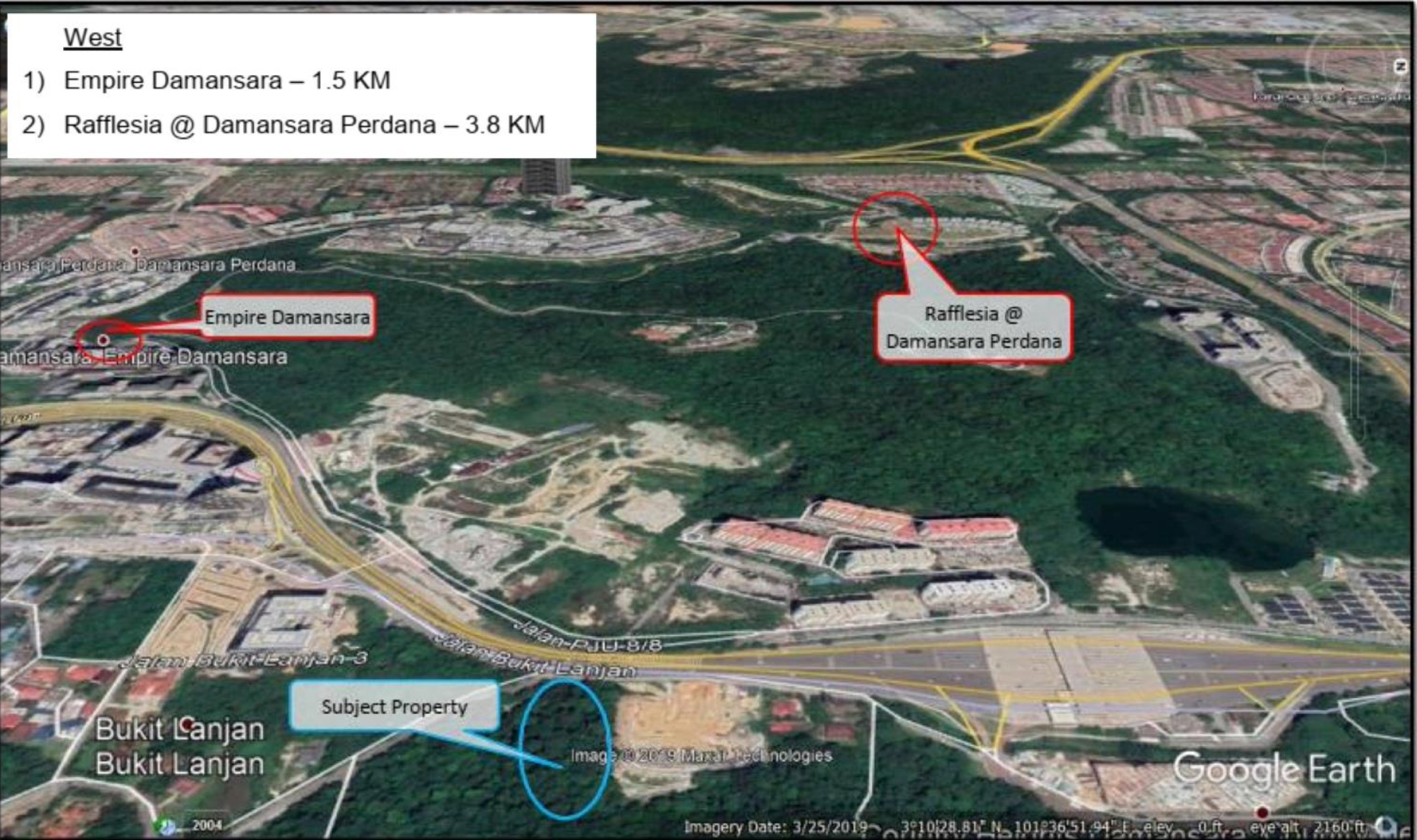 - Nearest MRT located at Mutiara Damansara about 2km from the subject property.